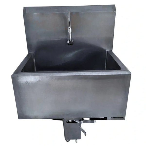 • Llave de rodilla fabricada con lámina de acero inoxidable 304 calibre 18" con palanca para accionar tipo "Y " de acero inoxidable con tubo de cobre de 5/8